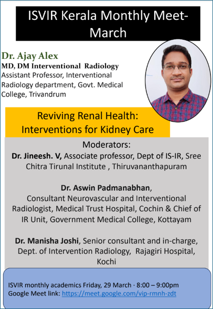 Join ISVIR Kerala to get the updates in Vascular & Interventional Radiology and join various Events conducted by ISVIR Kerala